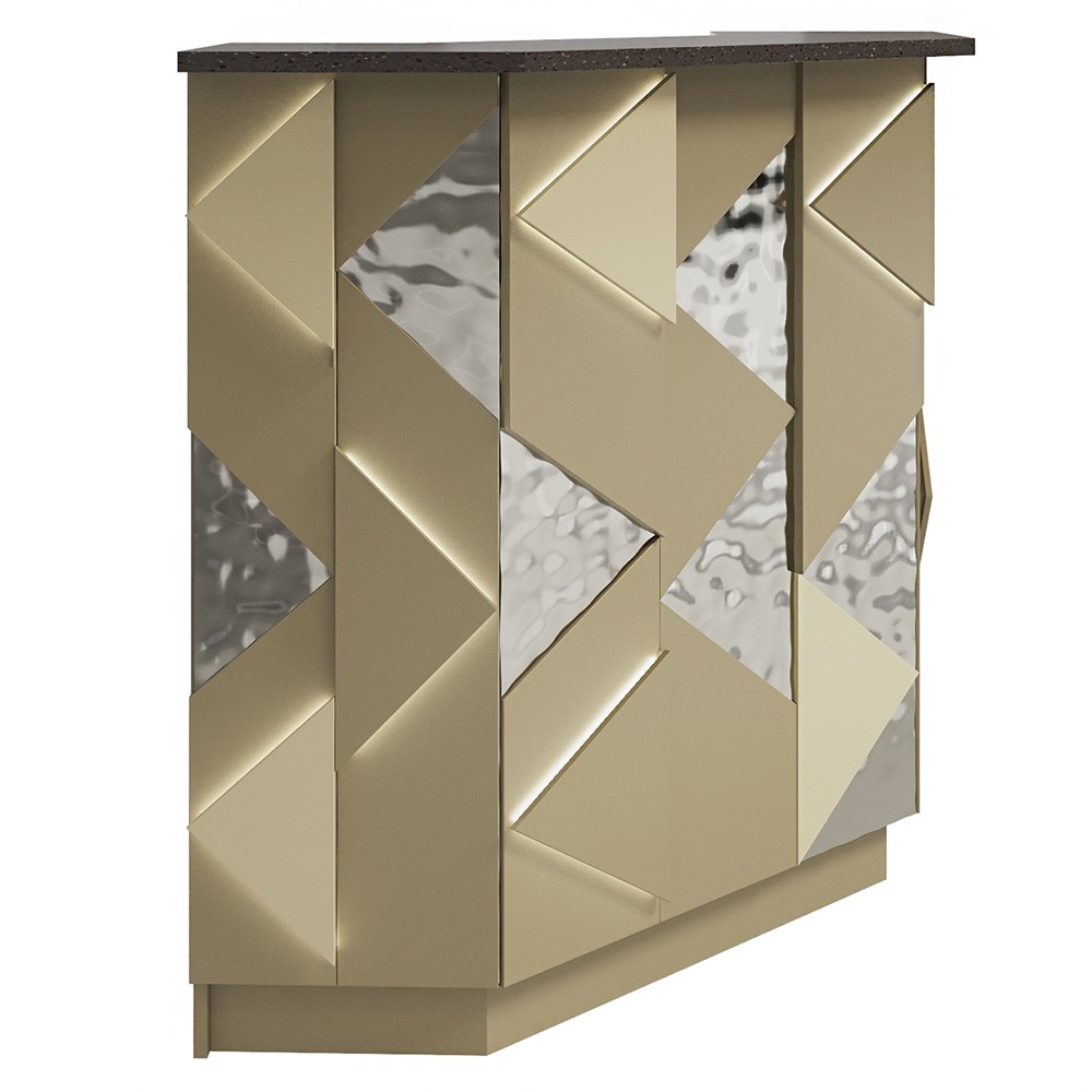 Габариты (ШхГхВ) : 1000х1000х1190 мм \; Материал корпуса : ЛДСП 16 мм., кромка ПВХ 2 и 0,4 мм. \; Материал фасада : ЛДСП 16 мм., кромка ПВХ 0,4 мм., МДФ 16 и 25 мм., отделка ЛКМ – покраска по RAL Classic, нержавеющая сталь. \; Столешница рабочая и гостевая : ЛДСП 25 мм., кромка ПВХ 2 мм \; Подсветка : LED (под столешницей - дополнительная опция, в фасаде входит в стоимость)\;