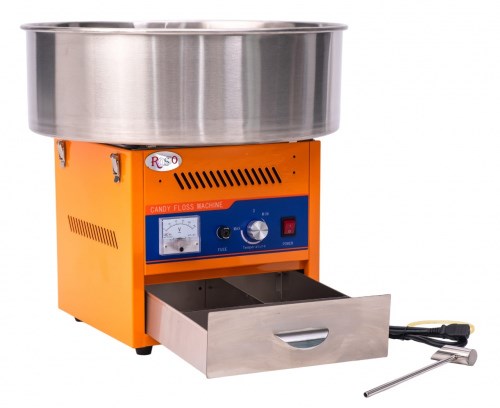 Питание, В: 220\; Мощность, кВт: 0,93\; Тип: Для сахарной ваты\; Установка: Настольная\; Производительность: 3 кг/ час\; Габаритные размеры, мм: 520х520х490\;
