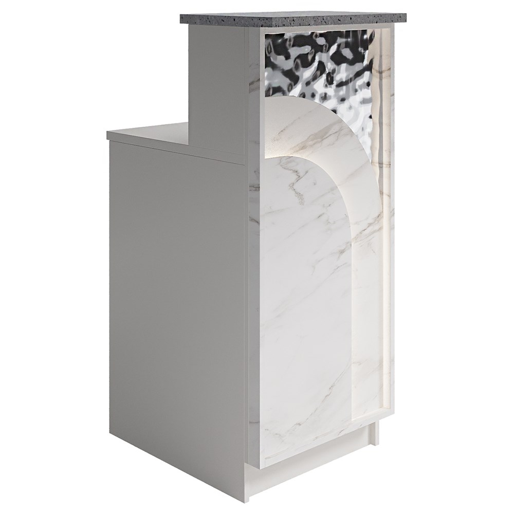 Габариты (ШхГхВ) : 504х686х1190 мм \; Материал корпуса : ЛДСП 16 мм., кромка ПВХ 2 и 0,4 мм. \; Материал фасада : ЛДСП 16 мм., кромка ПВХ 0,4 мм., МДФ 16 и 25 мм., отделка ЛКМ – покраска по RAL Classic, нержавеющая сталь полированная 1 мм. \; Столешница рабочая и гостевая : ЛДСП 25 мм., кромка ПВХ 2 мм \; Подсветка : LED (под столешницей - дополнительная опция, в фасаде входит в стоимость)\;