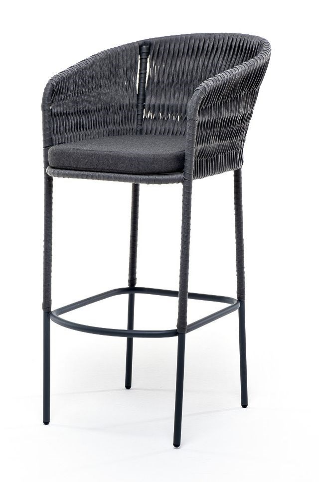 Габариты товара (ДхШхВ) : 590?520?1070 мм\; Габариты упаковки (ДхШхВ) : 610?540?1090 мм\; Материал плетения : эластичные ленты из высокопрочных полиэфирных волокон (роуп)\; Цвет плетения : серый\; Вид роупа : плоский 15 мм, плетение «колос»\; Материал каркаса : сталь\; Цвет каркаса : серый (RAL7022)\; Фактура покрытия каркаса : муар\; Высота сидения : 810 мм\; Материал ткани : полиэстер 100% плотностью 300гр/м2 с влагоотталкивающей пропиткой\; Цвет ткани : темно-серый, серый\; Вес (Нетто) : 9.5 кг\;