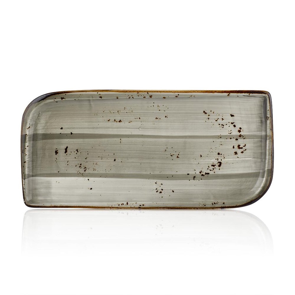 Тип посуды: блюдо\; Серия: Supreme\; Материал: фарфор\; Форма: прямоугольная\; Основной цвет: серый\; Размер, мм: 350х210\;