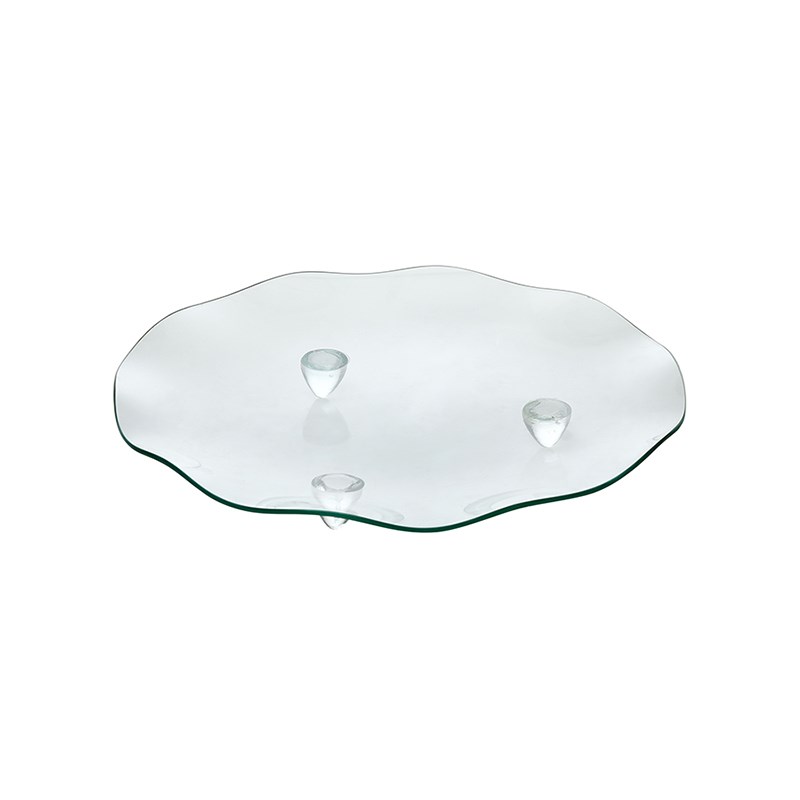 Диаметр : 350 мм\; Рисунок : с волнистым краем, на низких стеклянных ножках, гладкое\; Материал изготовления : стекло\;