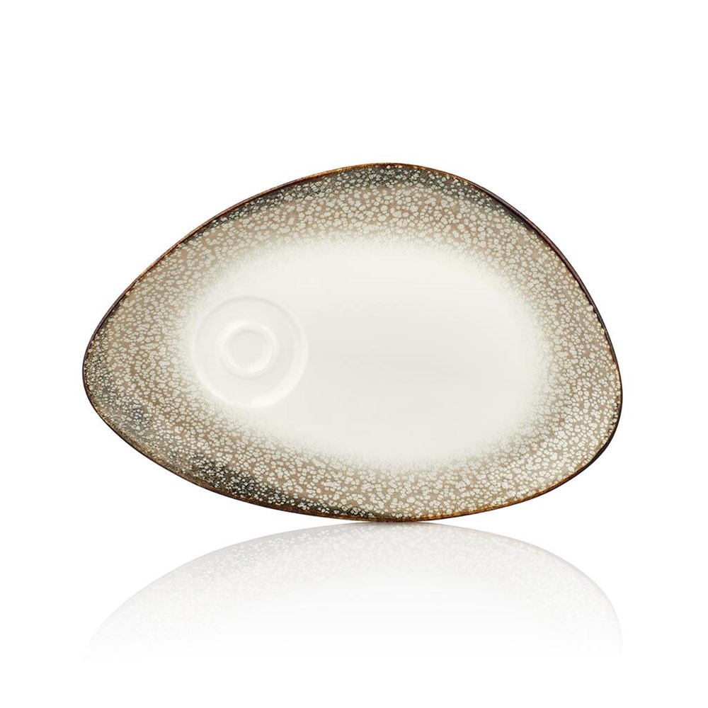 Тип посуды: блюдце\; Серия: Tinta Spazio\; Материал: фарфор\; Основной цвет: коричневый\; Форма: треугольная\; Размер, мм: 250х170\;