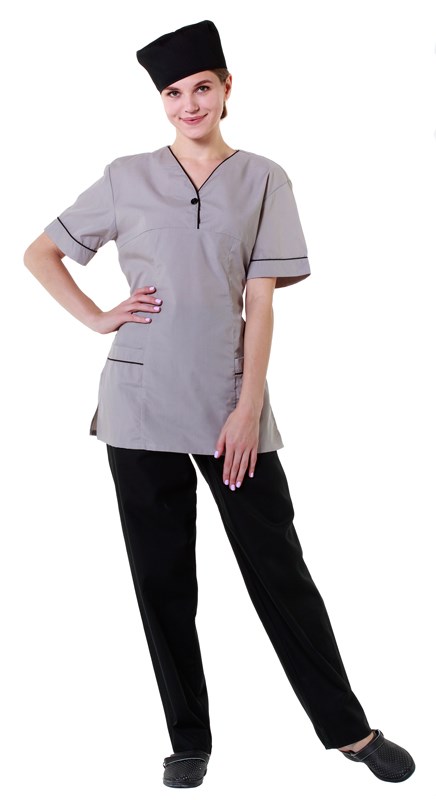 Ткань: ТиСи\; Состав ткани : 35% хлопок, 65% полиэстер\; Плотность ткани : 120 г/кв.м\; Отделка декоративная : черный кант по вороту, на рукавах и карманах\;