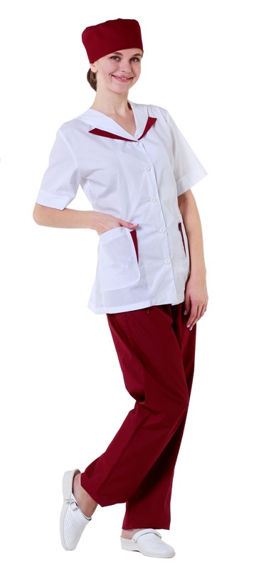 Состав: 65% полиэстер, 35% хлопок\; Ткань: ТиСи\; Плотность ткани: 120 г/кв.м\; Отделка декоративная: бордовые вставки у воротников и карманов\; Застежка: пуговицы\;