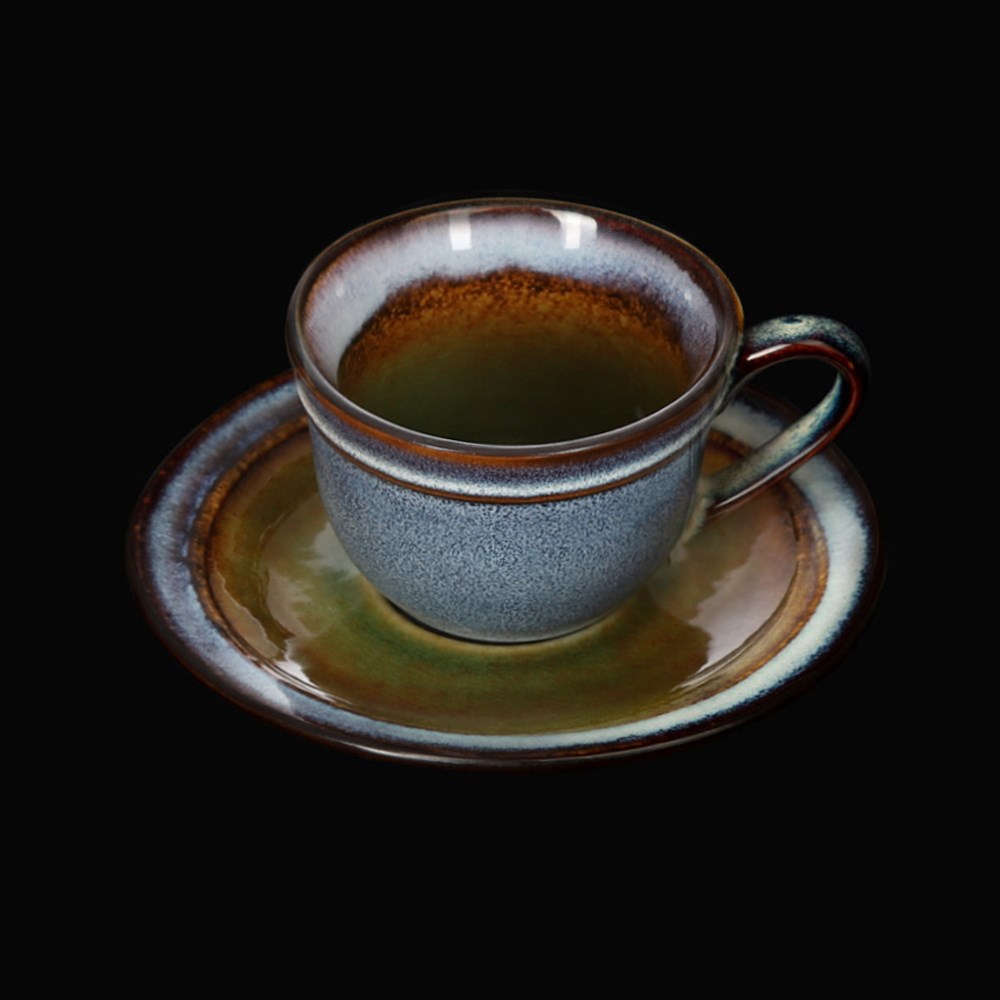 Тип посуды: чайная пара\; Серия: Corone Verde\; Материал: фарфор\; Форма: традиционная\; Основной цвет: синий+зеленый\; Номинальный объем, мл: 290\; Особенности: эффектарная глазурь\;