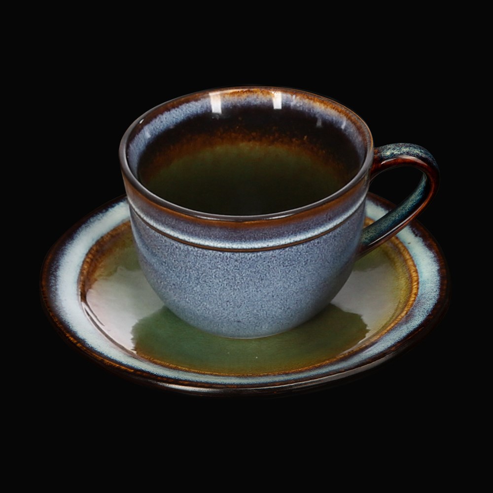 Тип посуды: чайная пара\; Серия: Corone Verde\; Материал: фарфор\; Форма: традиционная\; Основной цвет: синий+зеленый\; Номинальный объем, мл: 330\; Особенности: эффектарная глазурь\;