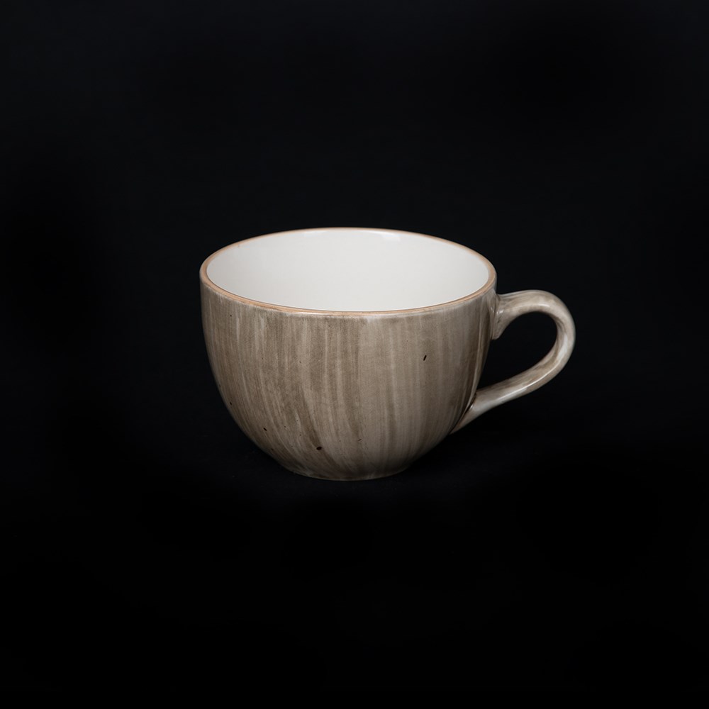 Тип посуды: чашка кофейная\; Серия: Natura\; Материал: фарфор\; Форма: круглая\; Основной цвет: серо-коричневый\; Номинальный объем, мл: 95\; Особенности: снаружи серо-коричневая - внутри белая, ручная роспись\;