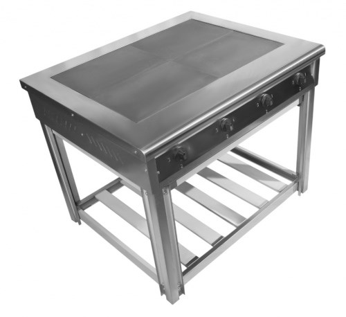 Питание: 380\; Мощность, кВт: 14\; Установка: на подставке\; Количество конфорок: 4\; Конфорка: чугун\; T max конфорки, °C: 50\; T min конфорки, °С: 480\; Габаритные размеры, мм: 860x860x860\;