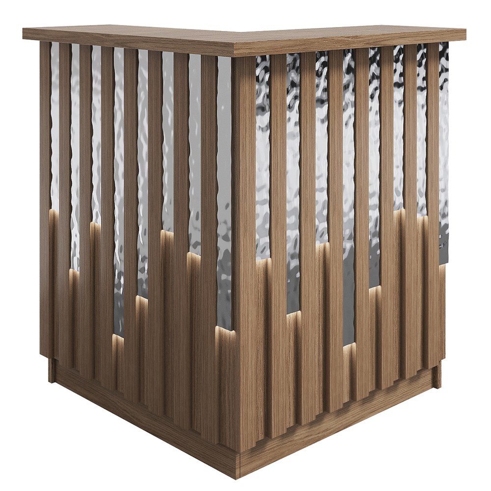 Габариты (ШхГхВ) : 1052х1052х1190 мм \; Материал корпуса : ЛДСП 16 мм., кромка ПВХ 2 и 0,4 мм. \; Материал фасада : ЛДСП 16 и 25 мм., кромка ПВХ 2 и 0,4 мм., нержавеющая сталь 1 мм. \; Столешница рабочая и гостевая : ЛДСП 25 мм., кромка ПВХ 2 мм \; Подсветка : LED (под столешницей - дополнительная опция, в фасаде входит в стоимость)\;