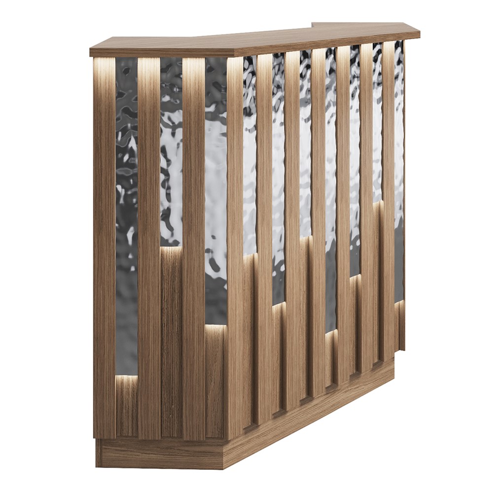 Габариты (ШхГхВ) : 1000х1000х1190 мм \; Материал корпуса : ЛДСП 16 мм., кромка ПВХ 2 и 0,4 мм. \; Материал фасада : ЛДСП 16 и 25 мм., кромка ПВХ 2 и 0,4 мм., нержавеющая сталь 1 мм. \; Столешница рабочая и гостевая : ЛДСП 25 мм., кромка ПВХ 2 мм \; Подсветка : LED (под столешницей - дополнительная опция, в фасаде входит в стоимость)\;