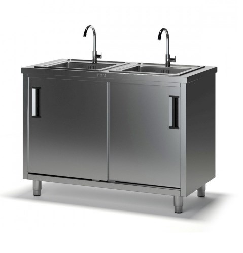 Двухсекционная ванна моечная СКМ-1 с тумбой (1500х600х870), 2 мойки цельн. накладные 400х500х140, отверстие под смеситель сбоку