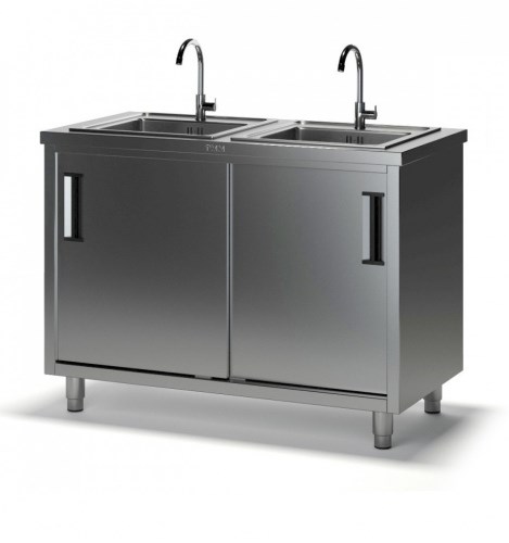 Двухсекционная ванна моечная СКМ-1 с тумбой (1500х600х870), 2 мойки цельн. вварные 400х400х250, отверстие под смеситель по центру
