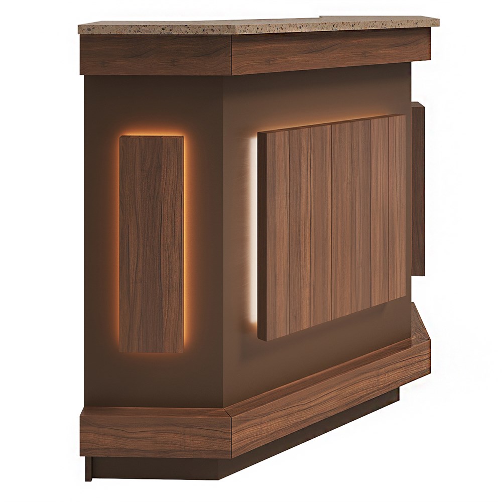 Габариты (ШхГхВ) : 1000х1000х1190 мм \; Материал корпуса : ЛДСП 16 мм., кромка ПВХ 2 и 0,4 мм. \; Материал фасада : ЛДСП 16мм, кромка ПВХ 0,4мм. Массив сосны 30 и 45мм, отделка ЛКМ - тонировка, лак матовый. \; Столешница рабочая и гостевая : ЛДСП 25 мм., кромка ПВХ 2 мм \; Подсветка : LED (под столешницей - дополнительная опция, в фасаде входит в стоимость)\;