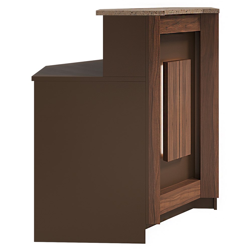 Габариты (ШхГхВ) : 1000х1000х1190 мм \; Материал корпуса : ЛДСП 16 мм., кромка ПВХ 2 и 0,4 мм. \; Материал фасада : ЛДСП 16мм, кромка ПВХ 0,4мм. Массив сосны 30 и 45мм, отделка ЛКМ - тонировка, лак матовый. \; Столешница рабочая и гостевая : ЛДСП 25 мм., кромка ПВХ 2 мм \; Подсветка : LED (под столешницей - дополнительная опция, в фасаде входит в стоимость)\;