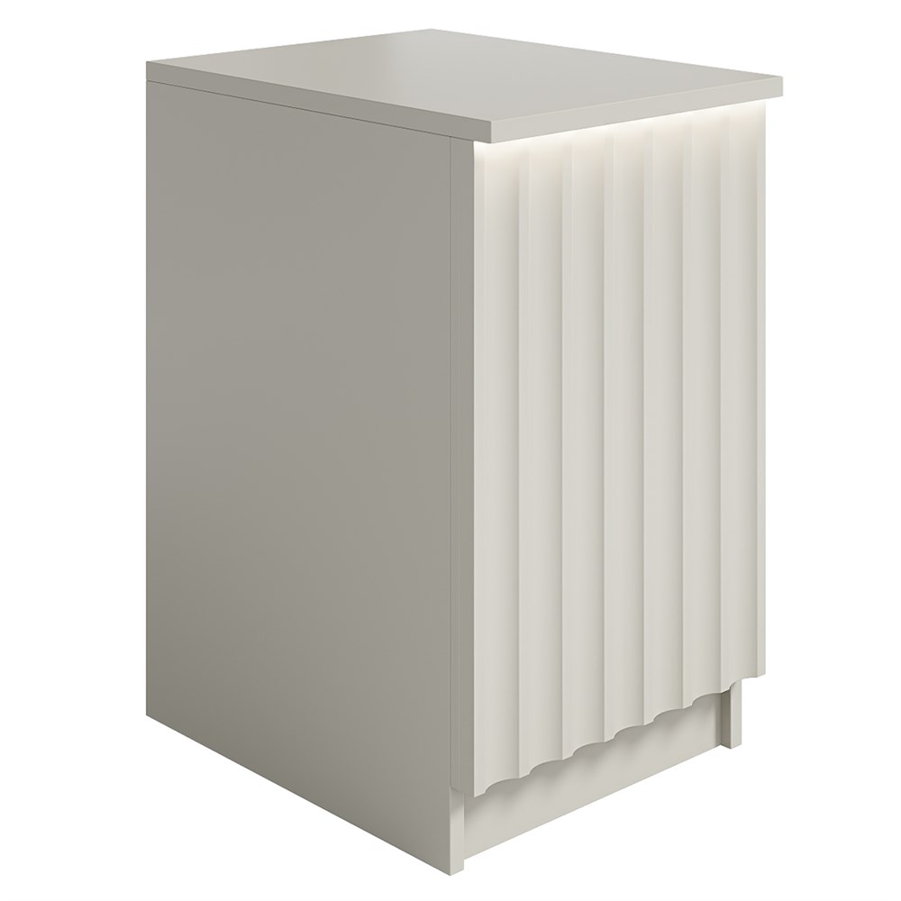 Габариты (ШхГхВ) : 504х654х865 мм \; Материал корпуса : ЛДСП 16 и 25 мм., кромка ПВХ 2 и 0,4 мм.\; Материал фасада : ЛДСП 16 мм., кромка ПВХ 2 мм., МДФ 32 мм. с фрезировкой, отделка ЛКМ - покраска по RAL Classic \; Столешница : ЛДСП 25 мм\; Подсветка : LED (дополнительная опция)\;