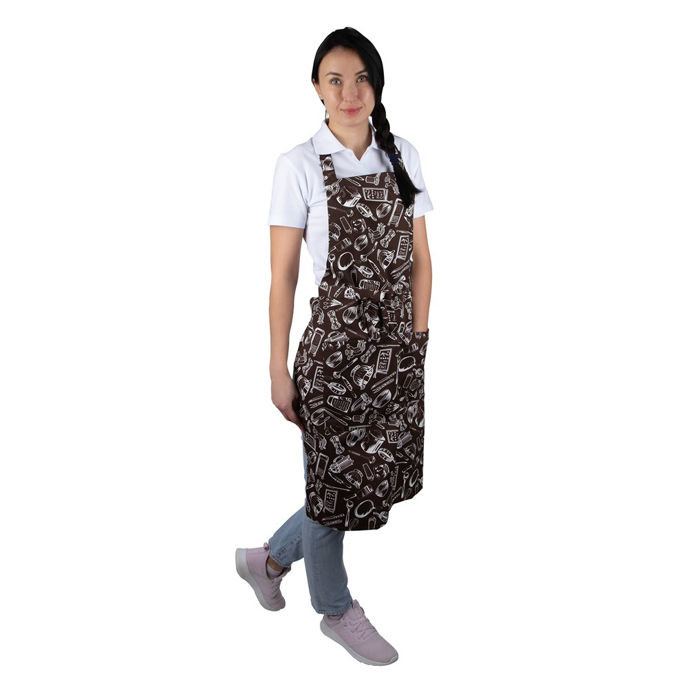 Фартук Гриль" поварёшки и кастрюли на коричневом фоне [00301]"