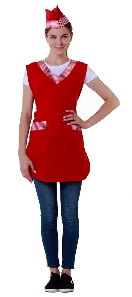 Состав ткани : 100% полиэстер\; Ткань : Габардин \; Плотность ткани : 180 г/м2\; Цвет ткани : красный\; Декоративная отделка : клетка белая/красная\; Особенности : боковые завязки, которые соединяют переднюю и заднюю часть фартука\;
