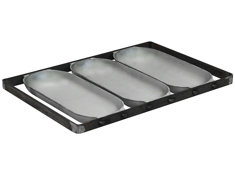 ФОРМА ХЛЕБНАЯ алюм. литая Батонница 250х105х30мм. 3-секционная с ручками 40см