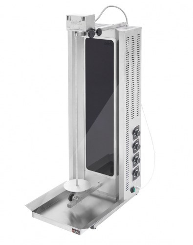 Питание: 380\; Мощность, кВт: 8,2\; Привод: электрический\; Количество зон нагрева: 4\; Длина вертела, мм: 1 000\; Максимальная загрузка, кг: 80\; Габаритные размеры, мм: 510х670х1370\;