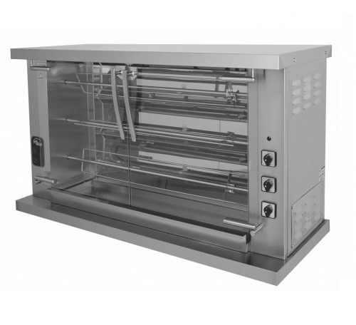 Питание, В: 380\; Мощность, кВт: 7,3\; Темп. режим, °С: 60-280\; Вместимость: 15 тушек\; Конструкция: шампурный\; Количество корзин/шампуров: 3\; Габаритные размеры, мм: 1298х494х731\;