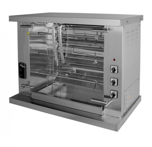 Питание, В: 380\; Мощность, кВт: 6,8\; Темп. режим, °С: 60-280\; Вместимость: 9 тушек\; Конструкция: шампурный\; Количество корзин/шампуров: 3\; Габаритные размеры, мм: 967х494х731\;