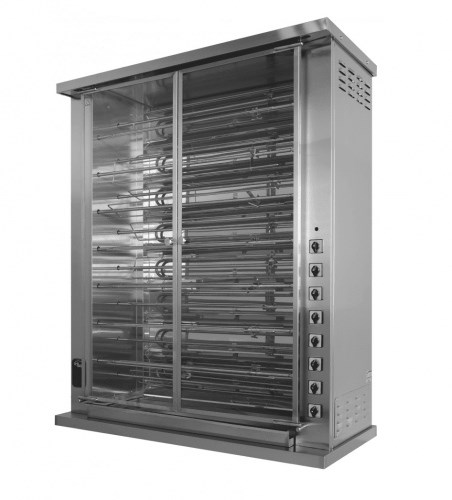 Питание, В: 380\; Мощность, кВт: 19,2\; Темп. режим, °С: 60-280\; Вместимость: 78 тушек\; Конструкция: шампурный\; Количество корзин/шампуров: 15\; Габаритные размеры, мм: 1298х583х1586\;