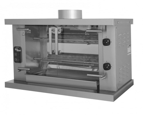 Питание, В: Газ + 220В\; Мощность, кВт: 6,4\; Темп. режим, °С: 50-280\; Вместимость: 6 цыплят\; Конструкция: шампурный\; Количество корзин/шампуров: 2\; Габаритные размеры, мм: 967х516х636\;
