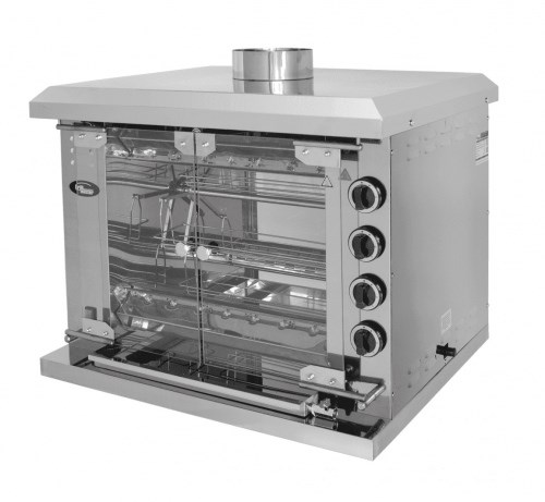 Питание, В: Газ + 220В\; Мощность, кВт: 13\; Темп. режим, °С: 50-280\; Вместимость: 15-20 цыплят\; Конструкция: карусельный\; Количество корзин/шампуров: 5\; Габаритные размеры, мм: 915х755х785\;