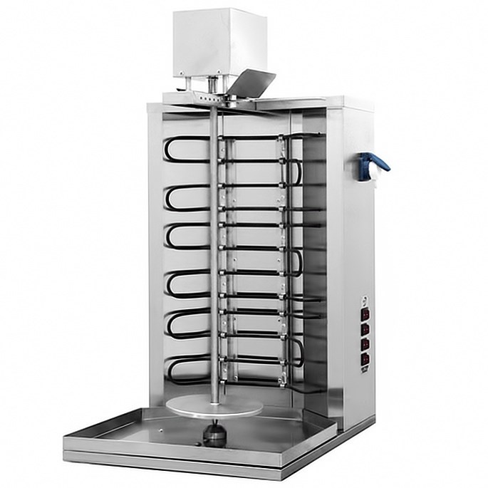 Питание: 220/380\; Мощность, кВт: 5,05\; Привод: электрический\; Количество зон нагрева: 2\; Длина вертела, мм: 600\; Максимальная загрузка, кг: 30\; Габаритные размеры, мм: 500x590x920\;