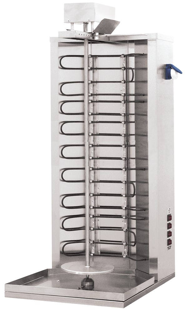 Питание: 380\; Мощность, кВт: 7,6\; Привод: Электрический\; Количество зон нагрева: 3\; Длина вертела, мм: 1 000\; Максимальная загрузка, кг: 50\; Габаритные размеры, мм: 500x590x1220\;