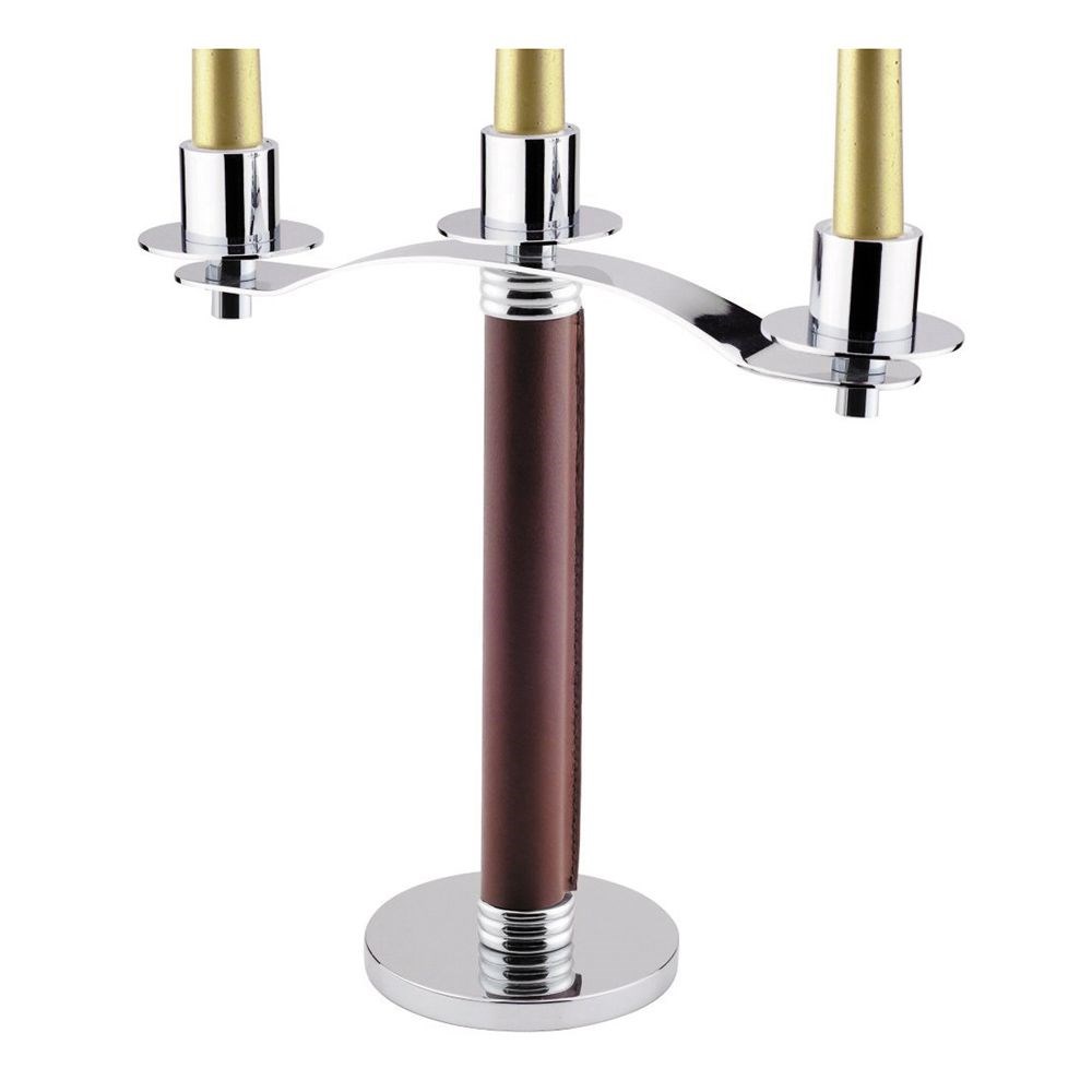 Канделябр на 3 свечи, h 28 см, нержавейка, ножка обтянута натуральной кожей, P.L. - REG