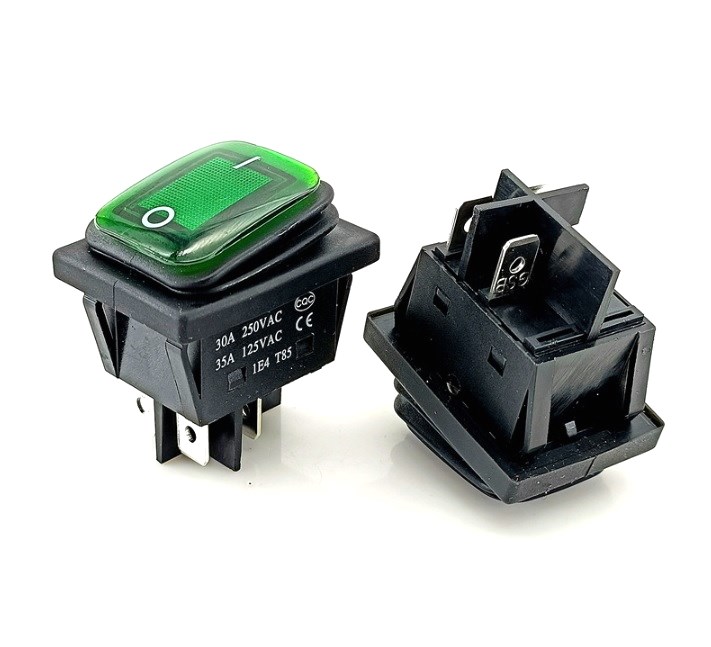 Клавиша влагозащитная с подсветкой 30А, 250V, зелёная