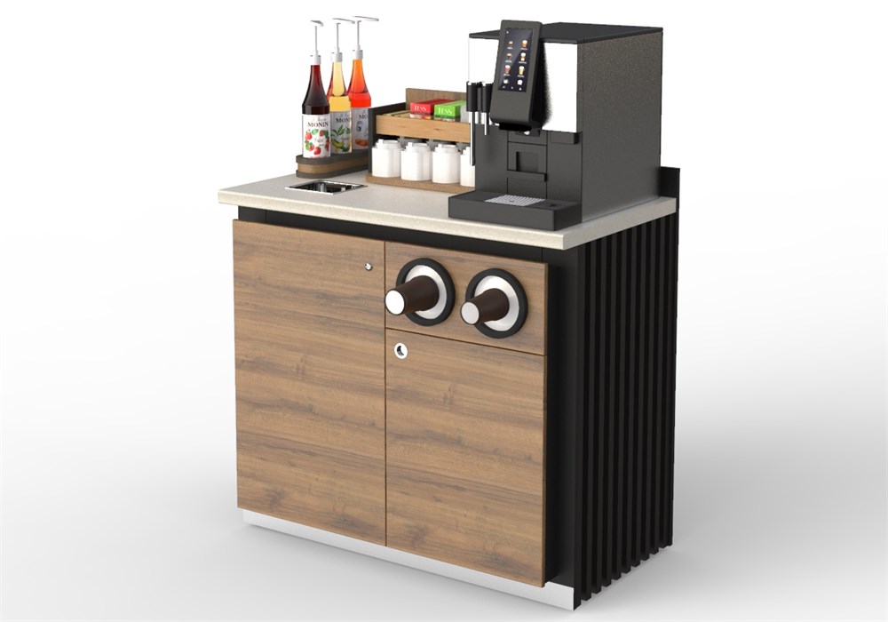 Габариты (ШхГ) : 1102х616 мм \; Высота : 1057/977 мм \; Назначение : Кофе-модуль самообслуживания \; Тип : напольный пристенный / островной \; Материал : ЛДСП Egger, МДФ, нержавеющая сталь \; Декоры : фото складской программы размещены ниже \; Вес : 97 кг\;