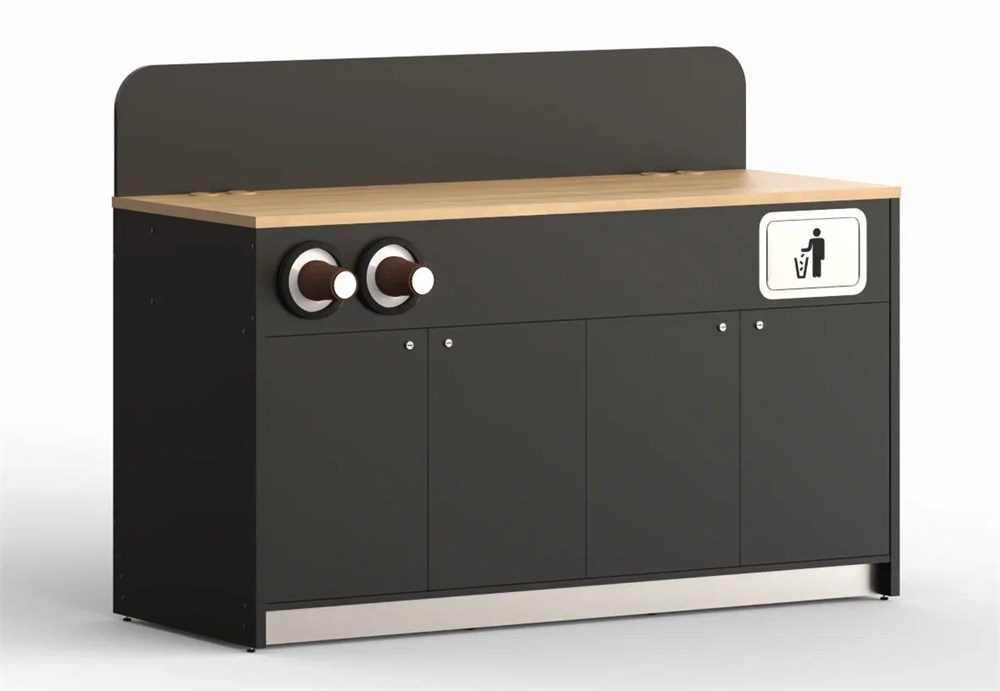 Габариты (ШхГ) : 1730х650 мм\; Высота : 1250/950 мм\; Назначение : Кофе-модуль самообслуживания\; Тип : напольный пристенный/ островной\; Материал : ЛДСП Egger, нержавеющая сталь, PLA пластик\; Декоры : фото складской программы размещены ниже\; Вес : 102 кг\;