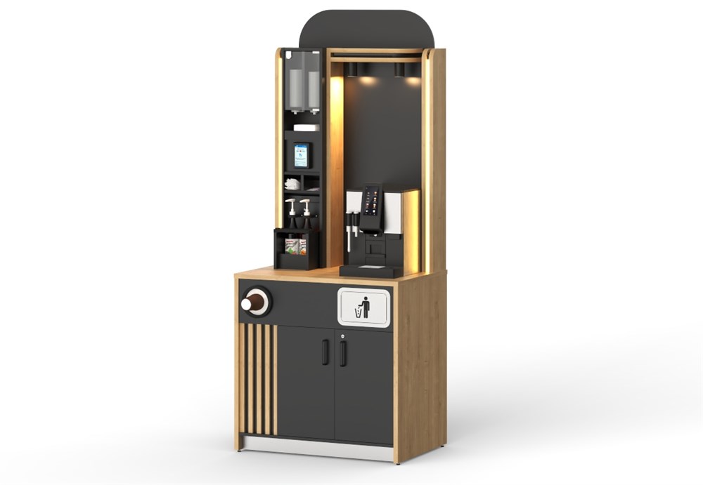 Габариты (ШхГ) : 950х700 мм \; Высота : 2370 \; Назначение : Кофе-модуль самообслуживания \; Тип : напольный пристенный / островной \; Материал : ЛДСП Egger, нержавеющая сталь, оргстекло, пластик \; Декоры : фото складской программы размещены ниже \; Вес : 90 кг\;