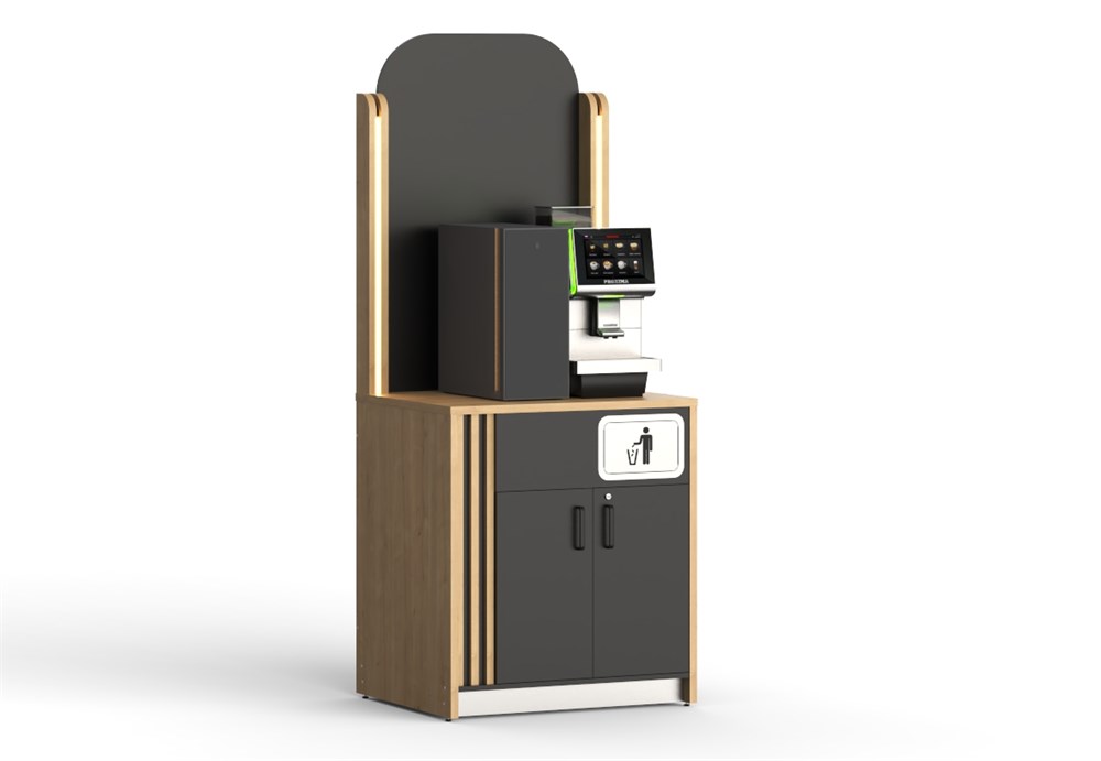 Габариты (ШхГ) : 850х700 мм \; Высота : 2090/950 мм \; Назначение : Кофе-модуль самообслуживания \; Тип : напольный пристенный /островной \; Материал : ЛДСП Egger, нержавеющая сталь \; Декоры : фото складской программы размещены ниже \; Вес : 78 кг\;