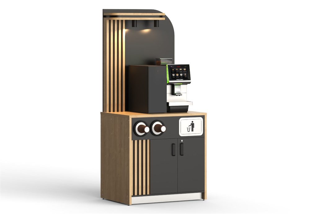 Габариты (ШхГ) : 950х700 мм \; Высота : 2090/950 мм \; Назначение : Кофе-модуль самообслуживания \; Тип : напольный пристенный / островной \; Материал : ЛДСП Egger, нержавеющая сталь \; Декоры : фото складской программы размещены ниже \; Вес : 99 кг\;