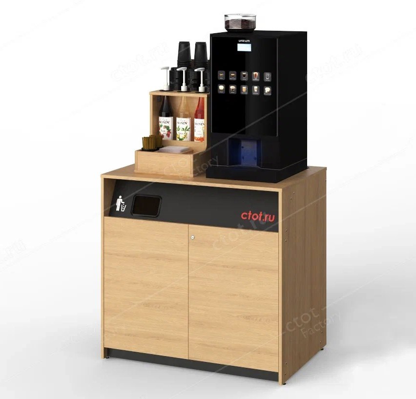 Габариты (ШхГ) : 1000х684 мм \; Высота : 950 мм \; Назначение : Кофе-модуль самообслуживания \; Тип : напольный пристенный / островной \; Материал : ЛДСП Egger \; Декоры : фото складской программы размещены ниже \; Вес : 53 кг\;