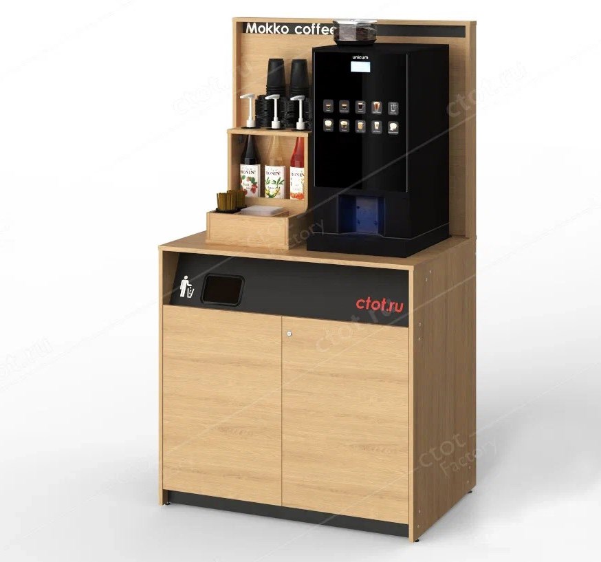 Габариты (ШхГ) : 1000х684 мм \; Высота : 1766/950 мм \; Назначение : Кофе-модуль самообслуживания \; Тип : напольный пристенный / островной \; Материал : ЛДСП Egger \; Декоры : фото складской программы размещены ниже \; Вес : 64 кг\;