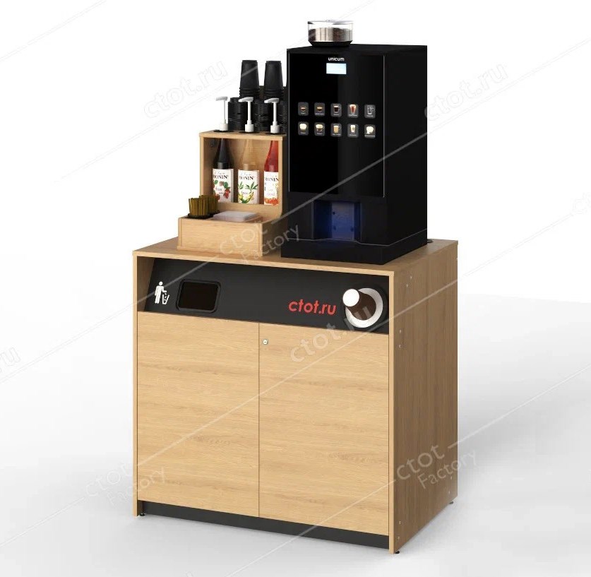Габариты (ШхГ) : 1000х684 мм \; Высота : 950 мм \; Назначение : Кофе-модуль самообслуживания \; Тип : напольный пристенный / островной \; Материал : ЛДСП Egger \; Декоры : фото складской программы размещены ниже \; Вес : 53 кг\;