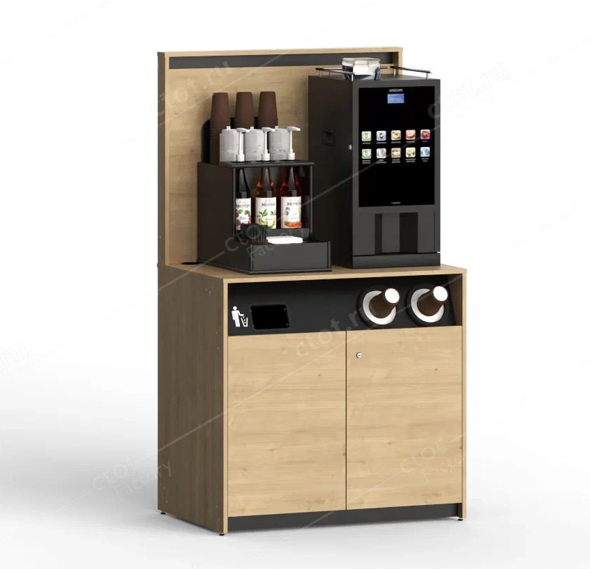 Габариты (ШхГ) : 1000х685 мм \; Высота : 1766/950 мм \; Назначение : Кофе-модуль самообслуживания \; Тип : напольный пристенный / островной \; Материал : ЛДСП Egger \; Декоры : фото складской программы размещены ниже \; Вес : 64 кг\;