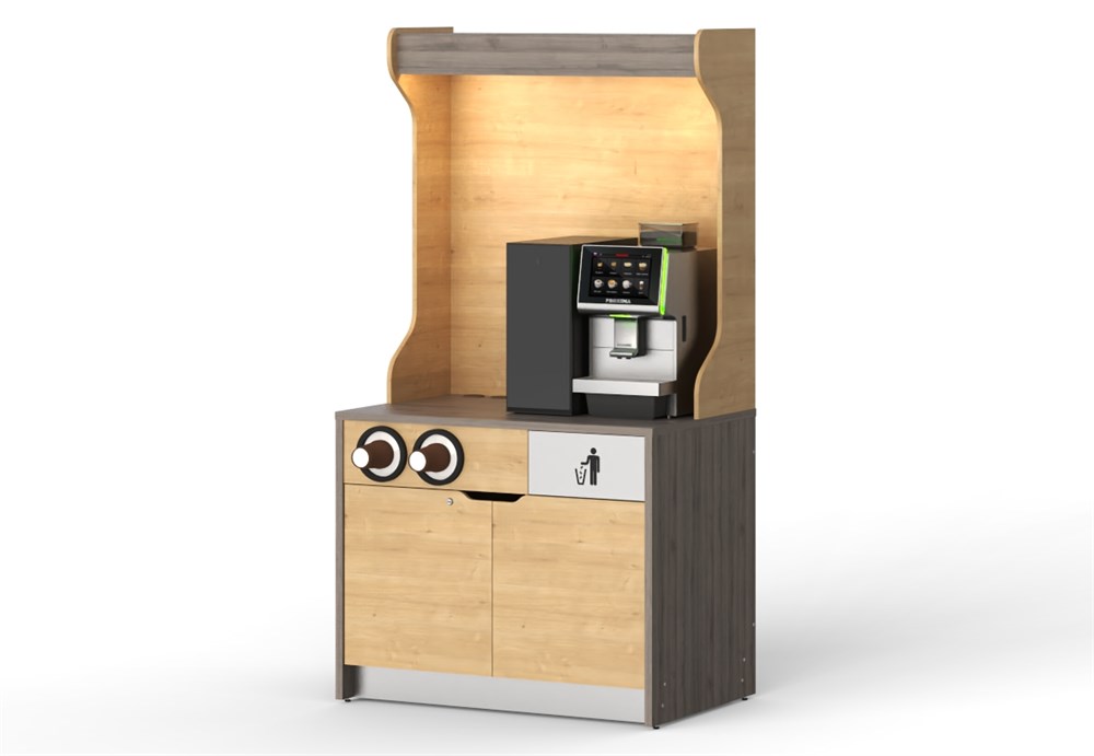 Габариты (ШхГ) : 1096х750 мм \; Высота : 2100/900 мм \; Назначение : Кофе-модуль самообслуживания \; Тип : напольный пристенный / островной \; Материал : ЛДСП Egger, нержавеющая сталь \; Декоры : фото складской программы размещены ниже \; Вес : 109 кг\;