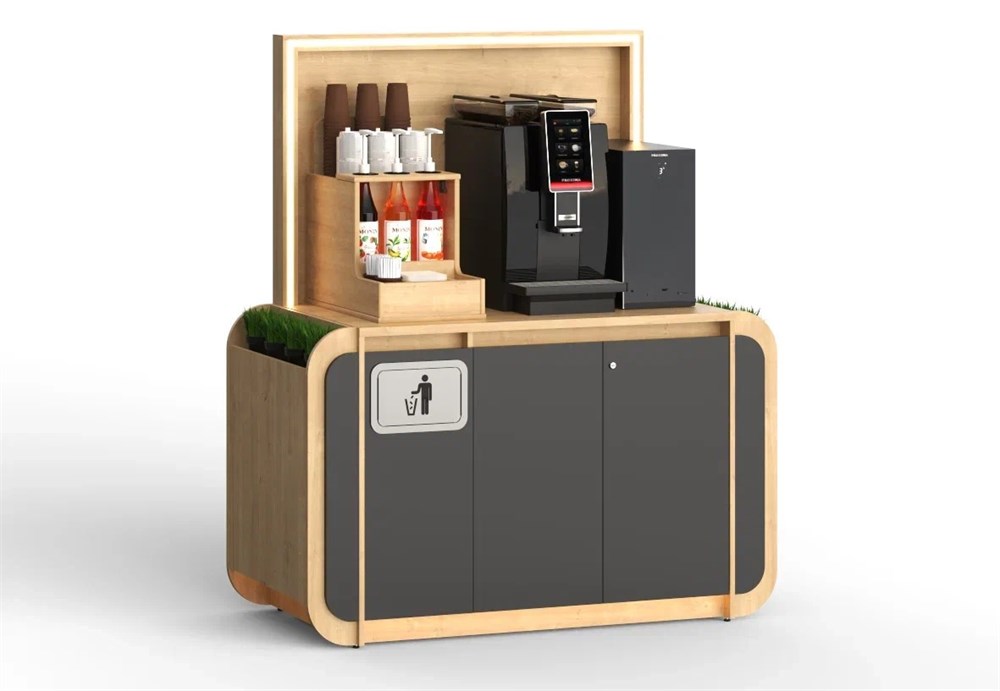 Габариты (ШхГ) : 1498х650 мм \; Высота : 1706 мм \; Назначение : Кофе-модуль самообслуживания \; Тип : напольный пристенный / островной \; Материал : ЛДСП Egger, пластик \; Декоры : фото складской программы размещены ниже \; Вес : 109 кг\;