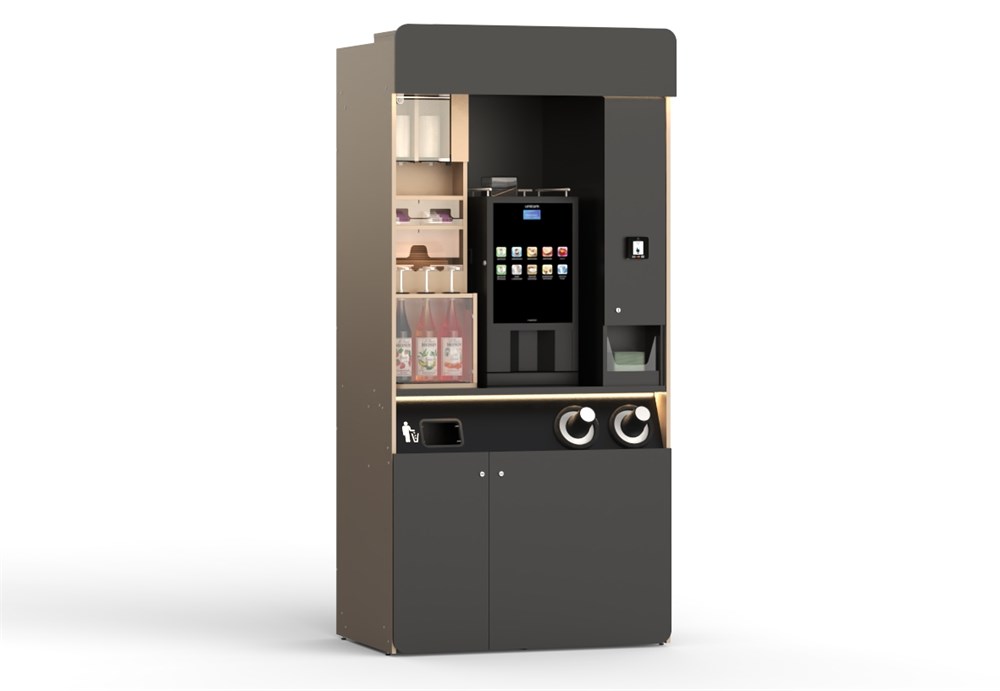 Габариты (ШхГ) : 1102х740 мм \; Высота : 2325 мм \; Назначение : Кофе-модуль самообслуживания \; Тип : напольный пристенный / островной \; Материал : ЛДСП Egger, оргстекло, пластик \; Декоры : фото складской программы размещены ниже \; Вес : 174 кг\;