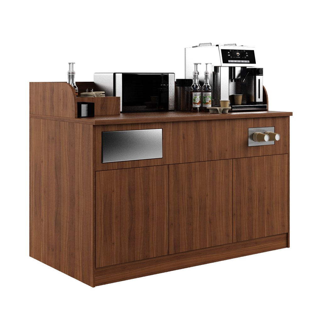 Габариты (ДхШ) : 1500х800мм\; Высота : 1100 мм\; Материал корпуса : ЛДСП толщиной 16 и 25 мм \; Фурнитура : ведущих мировых производителей\; В комплекте : диспенсер для стаканов, люк для мусора\;