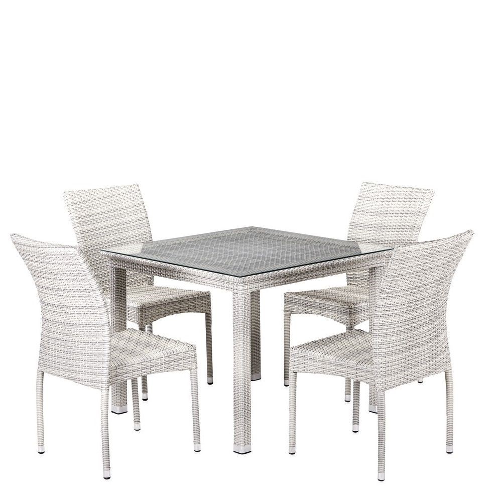Размер стола (ШхГхВ) : 900х900х740 мм\; Размер стула (ШхГхВ) : 450х560х920 мм (4 шт)\; Материал столешницы : закаленное стекло, стекло сверху\; Каркас : труба сталь D25\; Материал : искусственный ротанг\; Цвет : brown, латте\; Вес/объем : 50 кг./0,9 м3\;