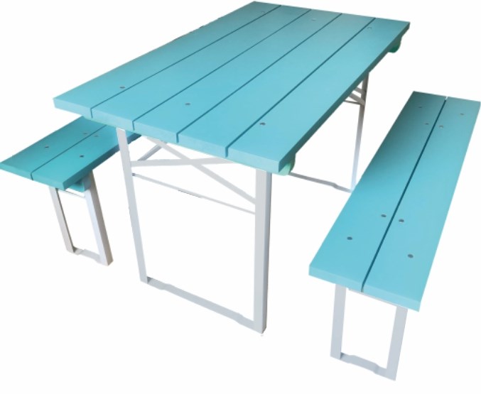 Стол (ШхГхВ) : 1200х650х740 мм\; Лавка 2 шт. (ШхГхВ) : 1200х280х460 мм\; Материал столешницы : дерево хвойных пород\; Материал каркаса : уголок стальной 32 мм\; Покрытие дерева : пропитка на вводной основе+ УФ лак \; Покрытие каркаса : порошковая краска\; Цвет : лазурь\; Вес : 41 кг\;