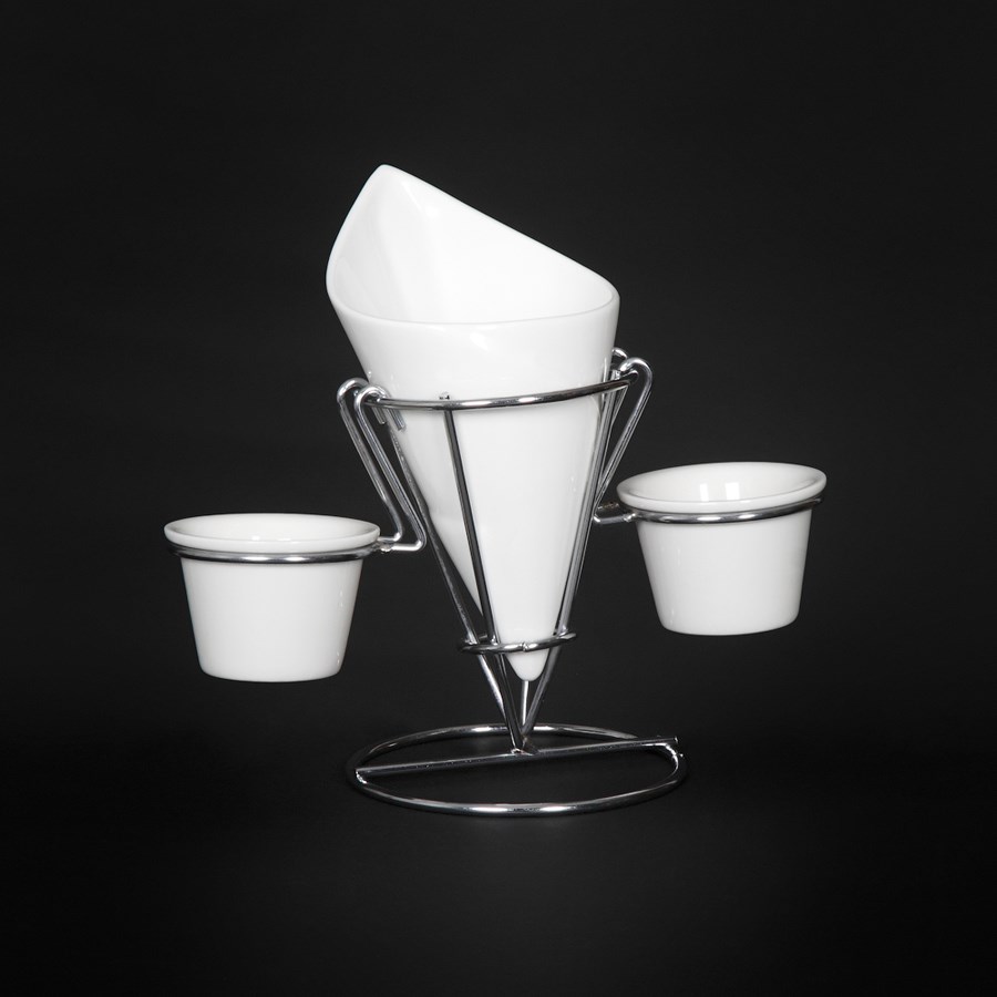 Конус для подачи картофеля фри «Chan Wave» с подставкой и 2 соусниками [DC106005]