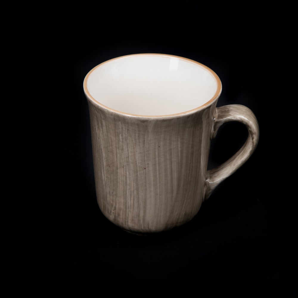 Тип посуды: кружка\; Серия: Natura\; Материал: фарфор\; Форма: круглая\; Основной цвет: серо-коричневый\; Номинальный объем, мл: 375\; Особенности: снаружи серо-коричневая - внутри белая, ручная роспись\;